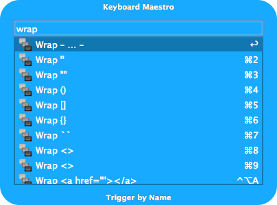 Momentan benutze ich den Workflow nur für ein paar globale Macros, für die ich keinen eigenen Shortcut festgelegt habe. Normalerweise hast du diese Funktionalität auch in Keyboard Maestro selbst über das Standard-Macro Trigger Macro by Name. Aber visuell macht die Suchmaske nicht allzu viel her.