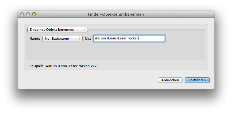Kurz aktiviert und du siehst das Textfeld für den Dateinamen. Einmal eingeben und Fortfahren drücken bitte.
